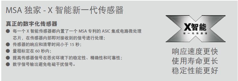 ● 采用MSA *家研制的X 智能傳感器,響應速度更快,使用壽命更長,穩定性能更好;