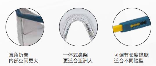 經濟型安全護目鏡,寬闊平坦前額設計,適合亞洲人臉型,可調節鏡腿,適合不同頭型的使用者。一體式全鏡片,阻隔99%紫外線,優質防霧防刮擦,有效提高鏡片壽命。高效側邊防護,讓使用者更安心。