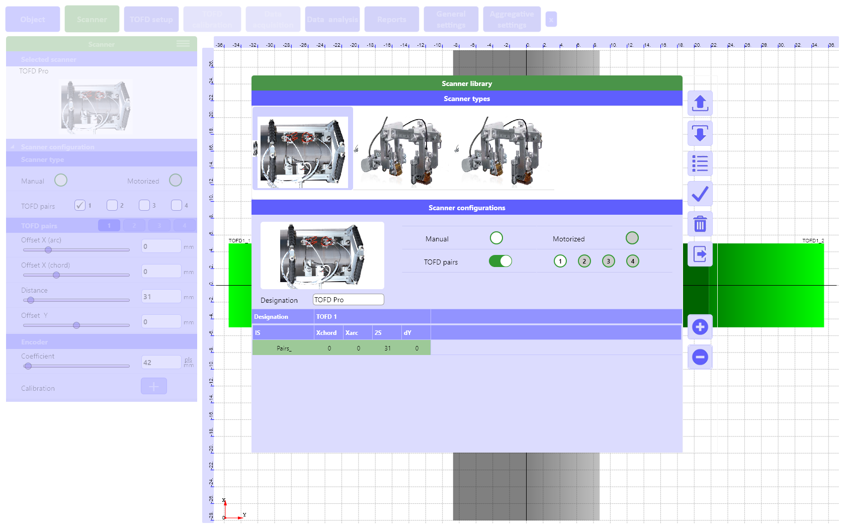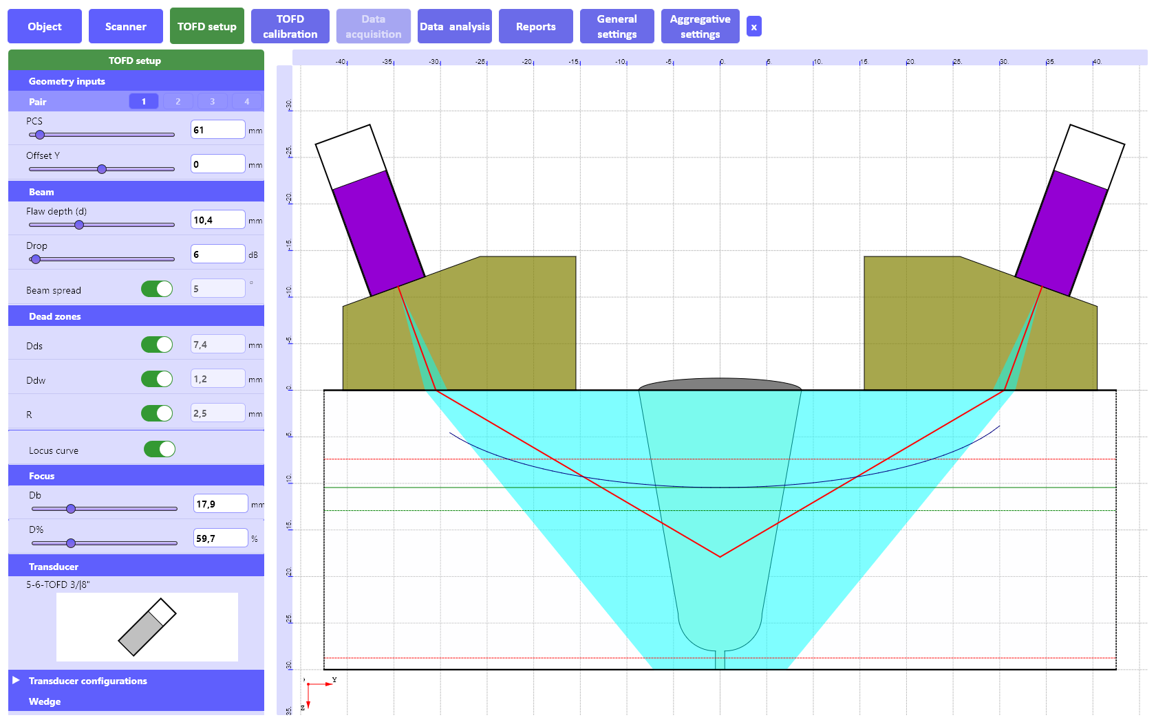 TOFD系統(tǒng)軟件包含多個(gè)選項(xiàng)卡,這些選項(xiàng)卡允許無損檢測(cè)檢查員執(zhí)行逐步的設(shè)置過程以及數(shù)據(jù)采集及其分析。 該軟件可以通過鼠標(biāo)和觸摸屏進(jìn)行管理。