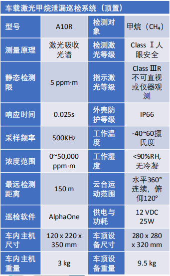 恒晉 A系列車載激光甲烷泄漏巡檢系統(tǒng)產(chǎn)品技術(shù)參數(shù):