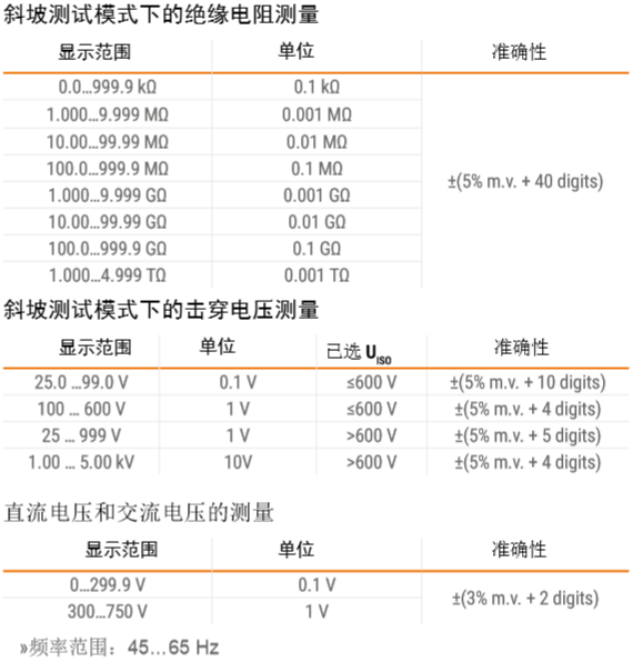 ?測量電壓在50…500 V范圍內選擇,步長為50 V,在500至5000 V之間選擇, 步長為100 V,