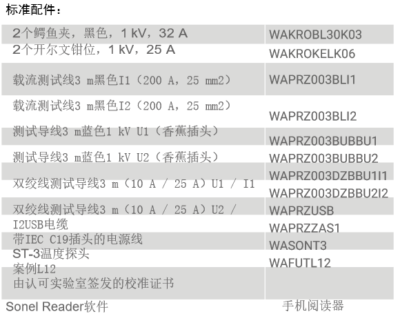 波蘭SONEL(索耐)MMR-6700 / MMR-6500微歐表-接觸電阻表 標準配件: