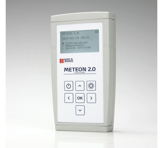 METEON 2.0是一款緊湊型手持數據記錄儀,專門用于測量與PV相關的太陽輻射。它裝在一個堅固的手提箱里,箱內可同時放置一臺太陽輻射測量儀和一根電纜。它可同時接入5個智能型和一個模擬Kipp & Zonen太陽輻射表,以及一個Mencke & Tegt meyer PV 面板溫度傳感器,還配有一個S0輸入kWh電表脈沖。
