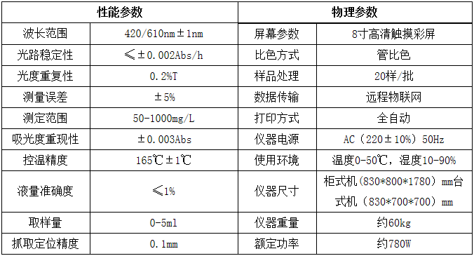 盛奧華 SH-8801型COD全自動分析儀 技術(shù)指標(biāo):
