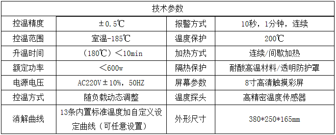 3、消解儀技術(shù)參數(shù)