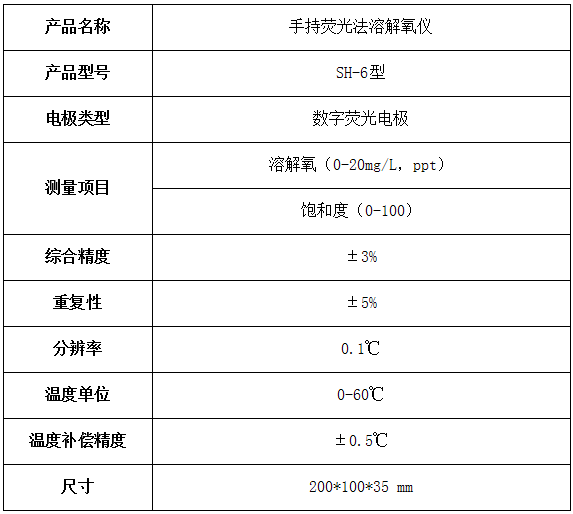 盛奧華 SH-6型手持熒光法溶氧儀 技術參數:
