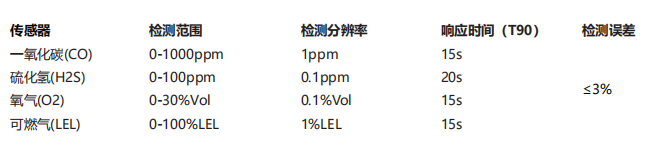 | 傳感器配置 | LEL/O2/CO/H2S |