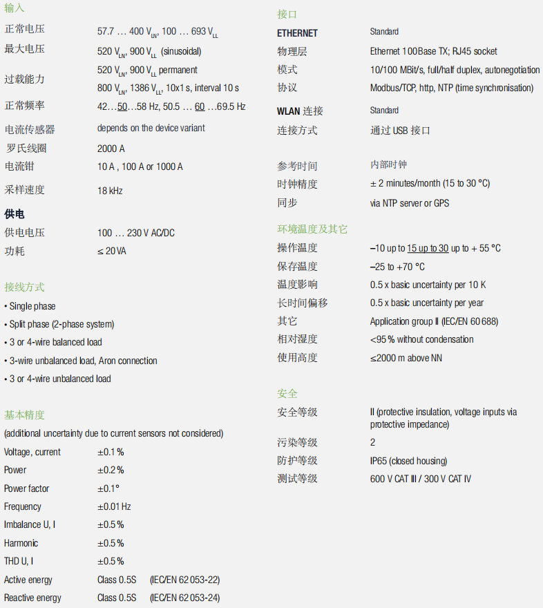 德國GMC-I高美測儀 PQ5000-MOBILE便攜式電能質量分析儀 技術參數:
