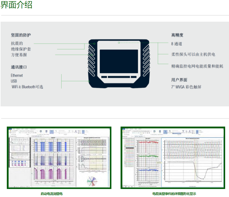 便攜式儀器,用于綜合電能質量,能源和需求分析,適合在1000V CAT III和600VCAT IV環境中進行測量。