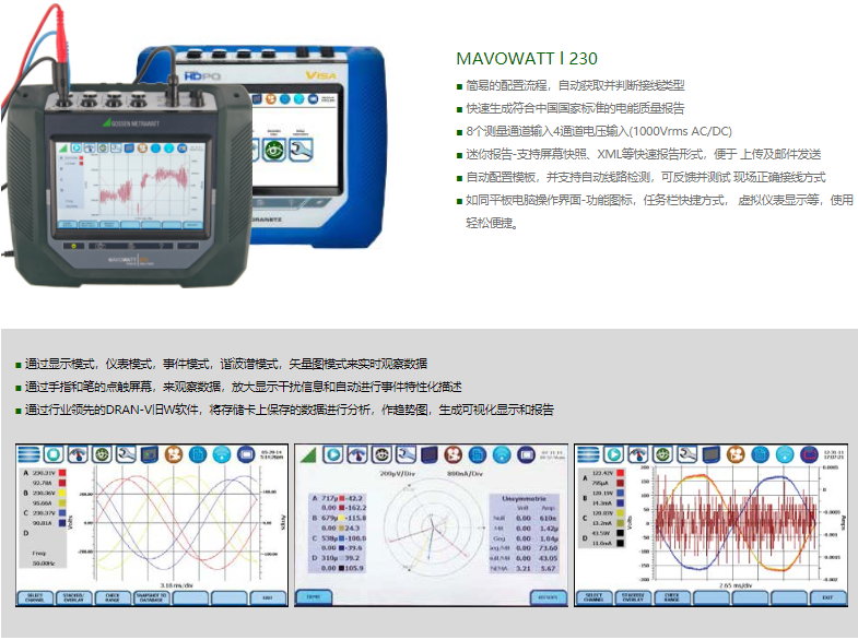 MAVOWATT系列電能質量分析儀用于監控,分析和記錄公共電網系統和工業用電中的電能質量參數。