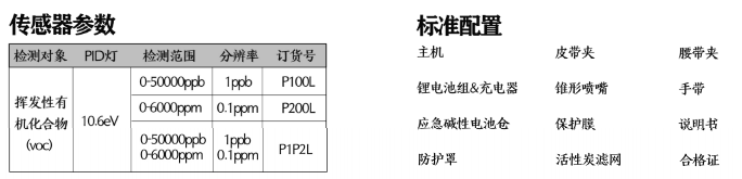日本RIKEN(理研) 便攜式VOC檢測儀P100L/P200L/P1P2L 配置參數: