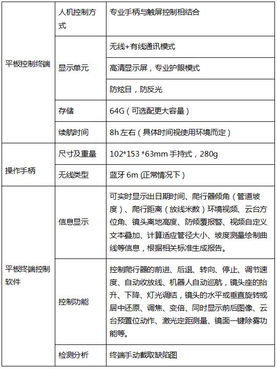- 無線連接:平板控制終端與線纜車WIFI無線連接,6m有效距離,視頻無延時,不卡頓