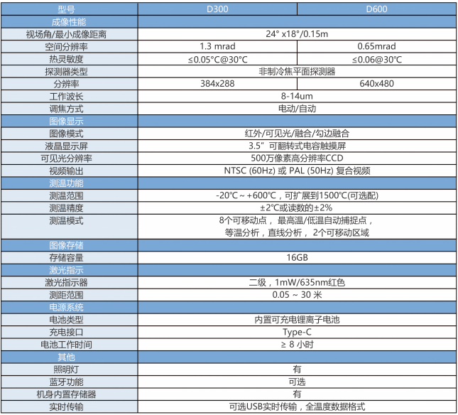 歐洲SATIR D300/D600全自動工具型熱像儀 產品參數:
