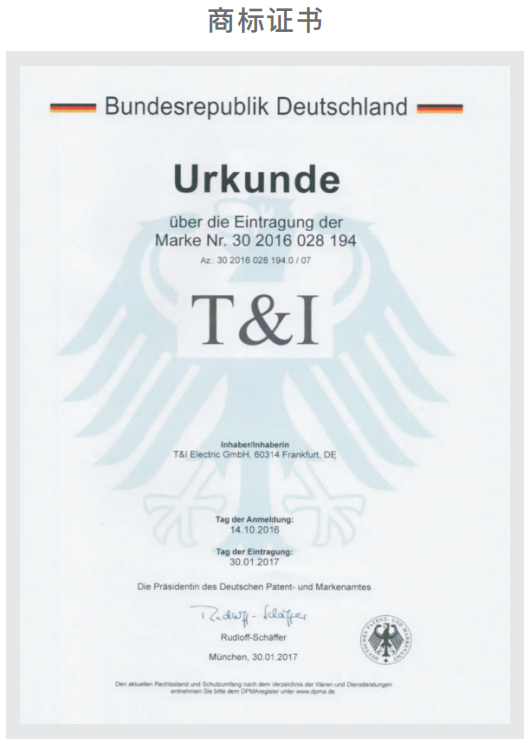 T&I 電氣有限公司( T&I Electric GmbH )是一家專門從事電力科技產品研發生產的高新技術企業,總部位于德國法蘭克福,致力于為電力、鐵路、通信、石油石化、市政管網、建筑工程等行業提供專業的管網運行維護、封堵系統解決方案。