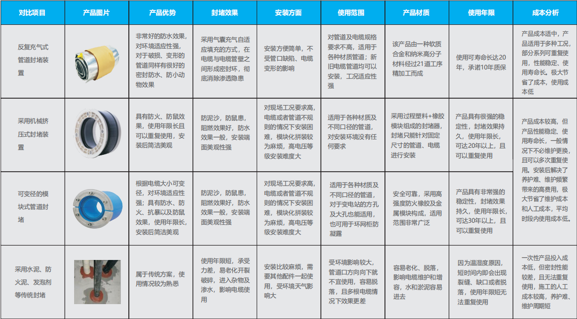 每個地市局擁有 35kV 變電站 50-100 座,每個變電站電纜井都至少有 3 個入墻穿隔面,每個穿隔面有 50 根以上電纜可以進行密封改造。