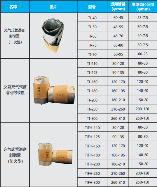 產品備注:充氣式電纜管道密封裝置