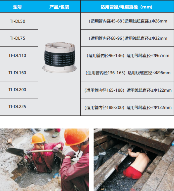 7 、產品適用于不同管徑規格的空管及有線的管道