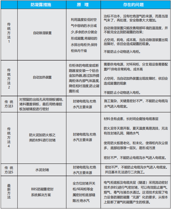 針對開關柜、配電柜、環網柜等電力設備出現的“受潮和凝露問題”,我們提出了“氣密封堵”的概念,采用領先于世界水平的“自流平膨脹技術”及“高分子自固化技術”,從根源上解決問題。從方案設計到現場施工以及后期維護一站式解決終端用戶的防凝露問題。