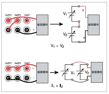如果想為雙極模擬電路供電,可以把 Series2230G 電源的通道 1 和通道 2、 30V和60V通道連接起來,為正電路 和負(fù)電路供電。電源擁有跟蹤模式,可 以使用一個(gè)控制操作,同時(shí)改變兩臺(tái)電 源的輸出。在電壓變化時(shí),跟蹤的兩條 通道的幅度可以一起變化,也可以按用 戶規(guī)定的比率變化。因此,可以簡(jiǎn)便地 在指定電壓工作范圍內(nèi)測(cè)試雙極電路、 模塊或器件。