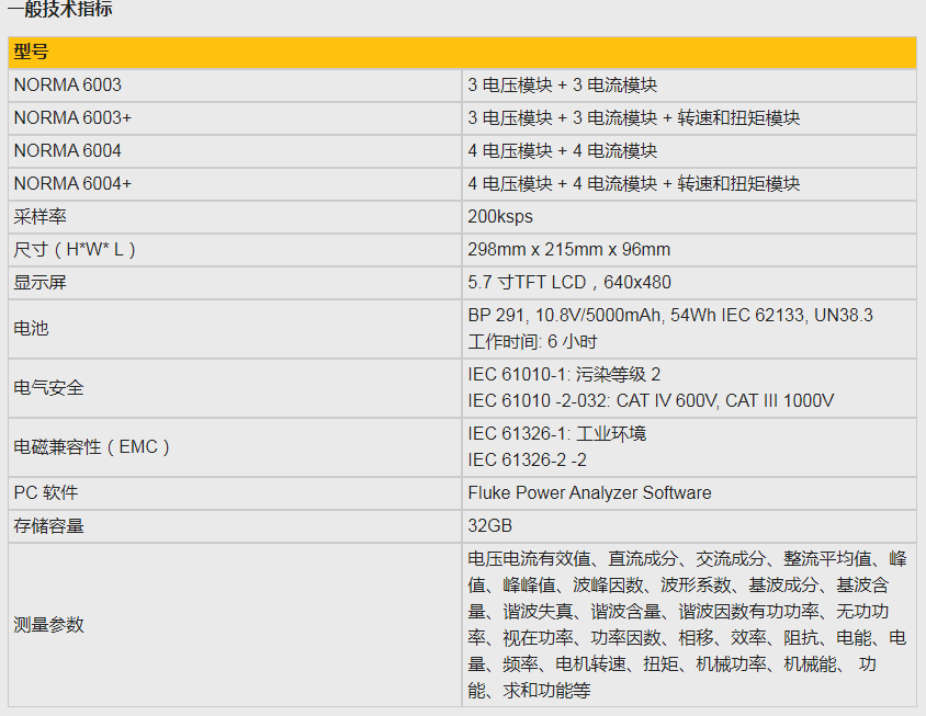 Fluke(福祿克) Norma 6000系列功率分析儀 產(chǎn)品規(guī)格: