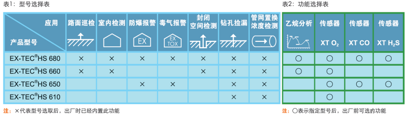 EX-TEC HS 600系列檢測儀有多種型號和多種功能,因此客戶要根據實際需求先選擇型號,然后再根據應用選擇附加功能。