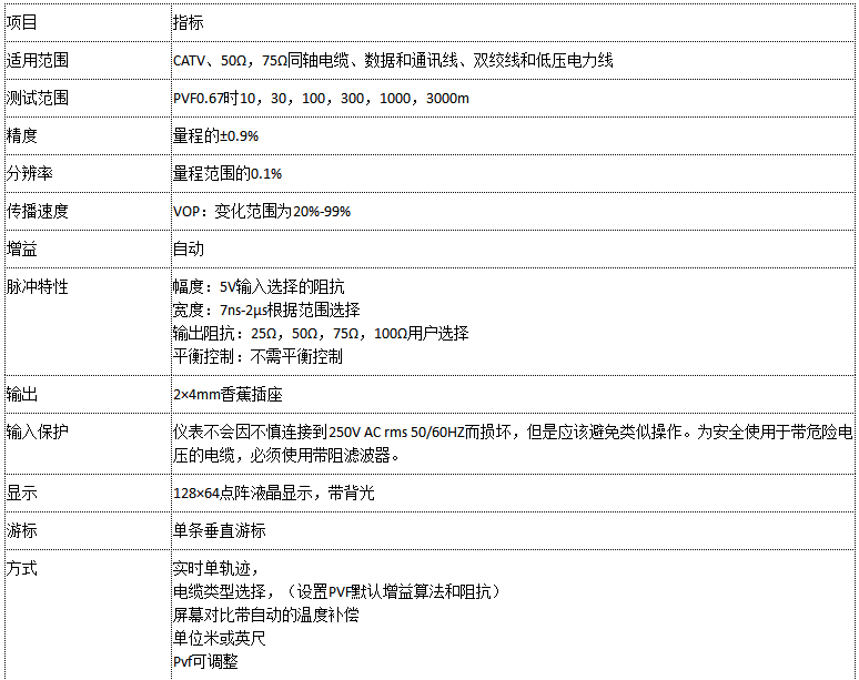 T810為真正的全能儀器。通過(guò)改變?cè)O(shè)置,可應(yīng)用于短或長(zhǎng)距離范圍的所有類(lèi)型的金屬電纜,如CATV,50Ω、75Ω同軸電纜,數(shù)據(jù)通信線(xiàn)和電話(huà)線(xiàn)、雙絞線(xiàn)和低壓電力線(xiàn)等。
