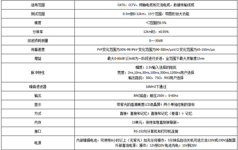 4.帶圖形放大功能的十三種測(cè)試范圍及非常短的脈沖寬度非常適合短距離電纜。脈沖寬度可自動(dòng)選擇和根據(jù)回波損耗自動(dòng)擇。