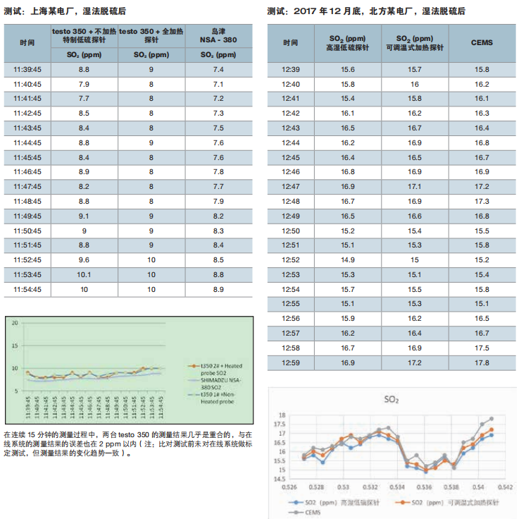 德圖專(zhuān)門(mén)開(kāi)發(fā)了低濃度SO2傳感器以及非加熱的高濕低硫探針和加熱型工業(yè)煙氣采樣探針,用于測(cè)量脫硫裝置中低濃度的SO2。為了進(jìn)行準(zhǔn)確的測(cè)量,可以將加熱型探針和非加熱型探針進(jìn)行配合使用。配有testo 350煙氣分析儀和帶有蠕動(dòng)泵的帕爾貼氣體調(diào)節(jié)裝置,用于自動(dòng)冷凝排水。可以完美測(cè)量在高濕低硫工況下的低濃度SO2測(cè)量。