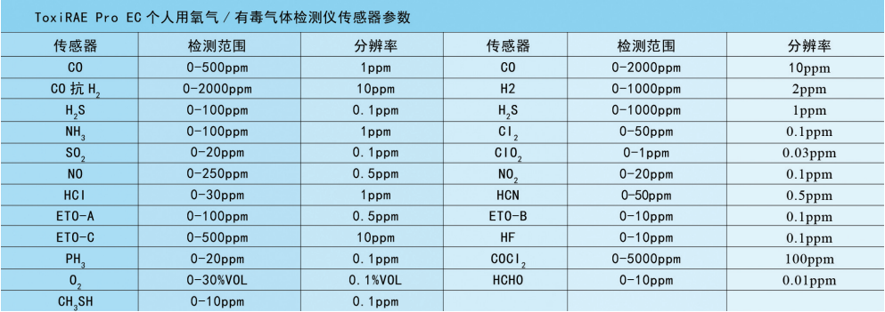 美國華瑞 RAE ToxiRAE Pro EC個(gè)人氧氣/有毒氣體檢測(cè)儀,PGM1860 相關(guān)參數(shù):