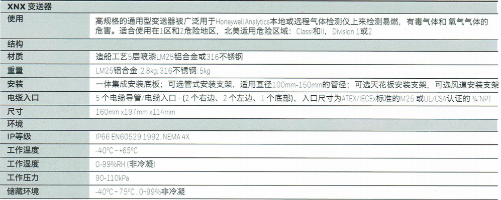 霍尼韋爾 XNX通用型氣體變送器 相關參數: