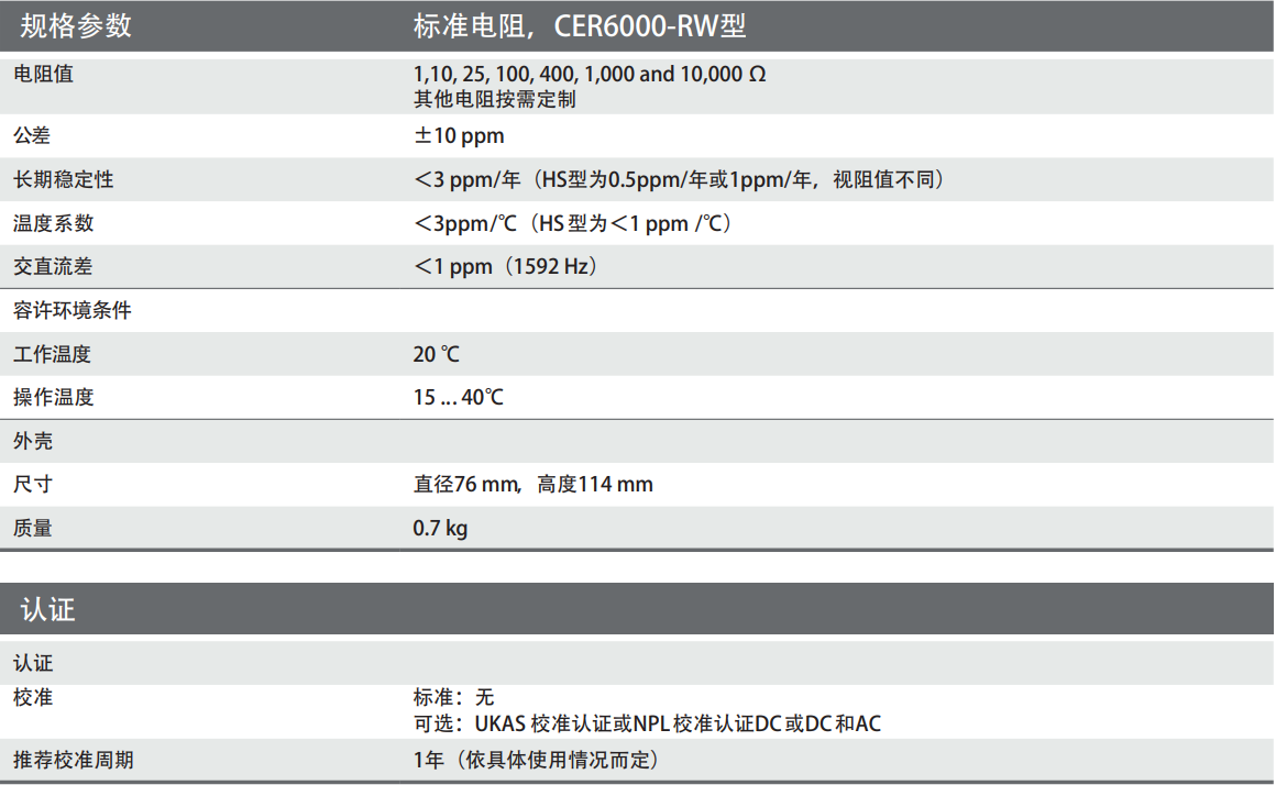 英國ASL CER6000-RW型(Wilkins 5685型)標準電阻產品技術參數: