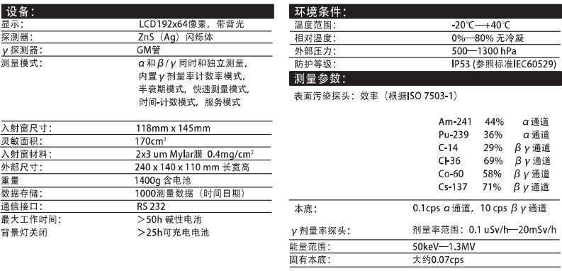 德國伯托 LB124 SCINT-D污染檢測儀+劑量率探頭 技術參數: