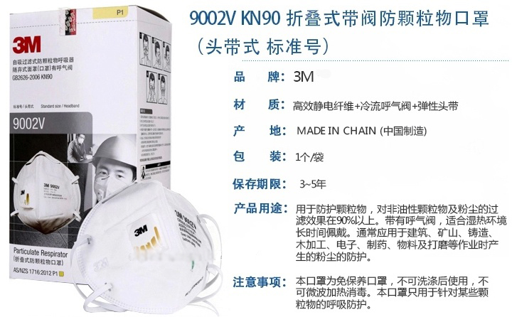 美國3M 9002V口罩 產品描述: 適用范圍:對非油性顆粒物及粉塵過濾效果大于90%