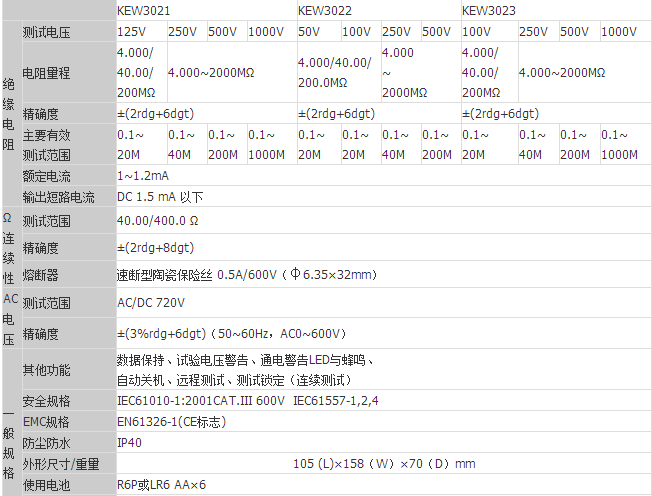 日本共立 KEW 3022絕緣/導(dǎo)通測(cè)試儀 相關(guān)參數(shù):