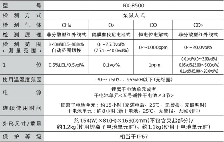 日本RIKEN(理研)RX-8500便攜式復合檢測儀產品技術參數: