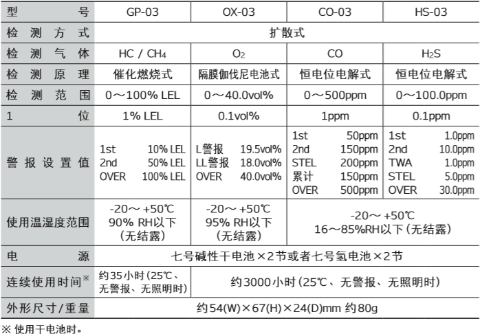 日本RIKEN(理研)03系列口袋式氣體檢測儀產品技術參數: