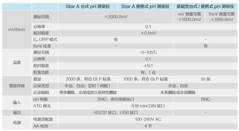 美國ORION奧立龍 Star A 系列臺式及便攜式 pH 測量儀產品技術參數: