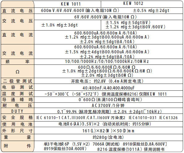 日本共立 KEW 1011/1012數字式萬用表 相關參數: