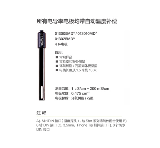 美國ORION奧立龍 013010MD /013025MD電導率電極產品技術參數: